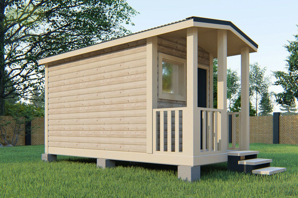 В базовую комплектацию входят: печка, пологи, трапики, слив, вентиляция, деревянные двери, вход с торца, в предбаннике столик и лавка (или две лавки), электропроводка, светильники. Снаружи баня покрыта антисептиком, внутри спецсоставом для бань и саун.